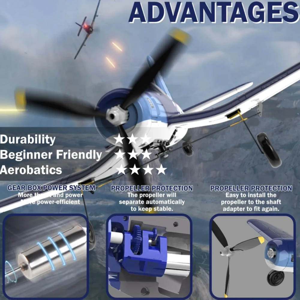 Dzięki funkcji jednego przycisku do wykonywania akrobacji oraz powrotu do domu, Volantexrc F4U Corsair jest doskonałym wyborem dla osób, które dopiero zaczynają swoją przygodę z modelami RC. Możesz wykonywać spektakularne manewry bez stresu, że nie uda Ci się wrócić do punktu startowego.