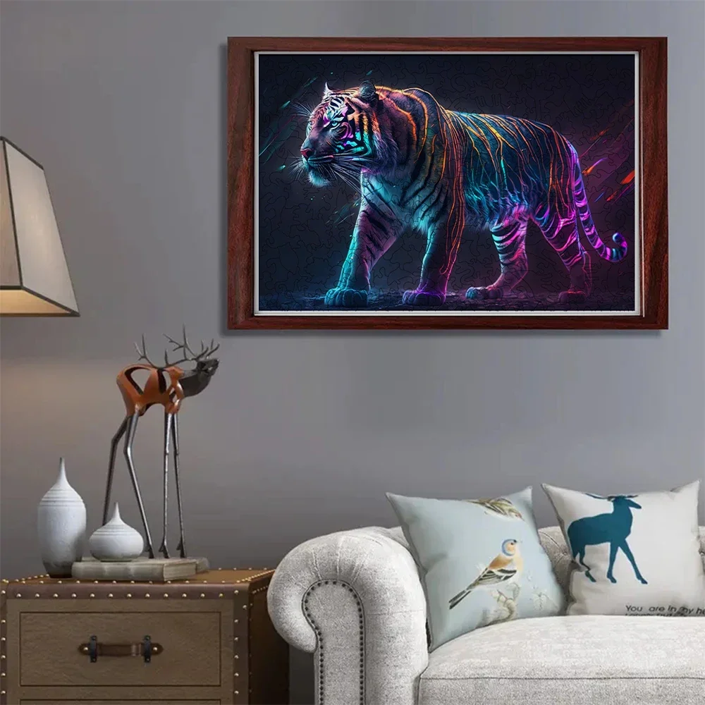 Psychodeliczne Puzzle Drewniane Tygrys – Doskonały Prezent dla Miłośników Wyzwań!