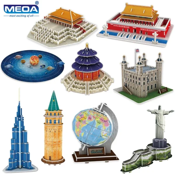 Szeroki wybór modeli: Zestaw zawiera modele słynnych budowli oraz globus – w sam raz dla miłośników architektury i geografii.