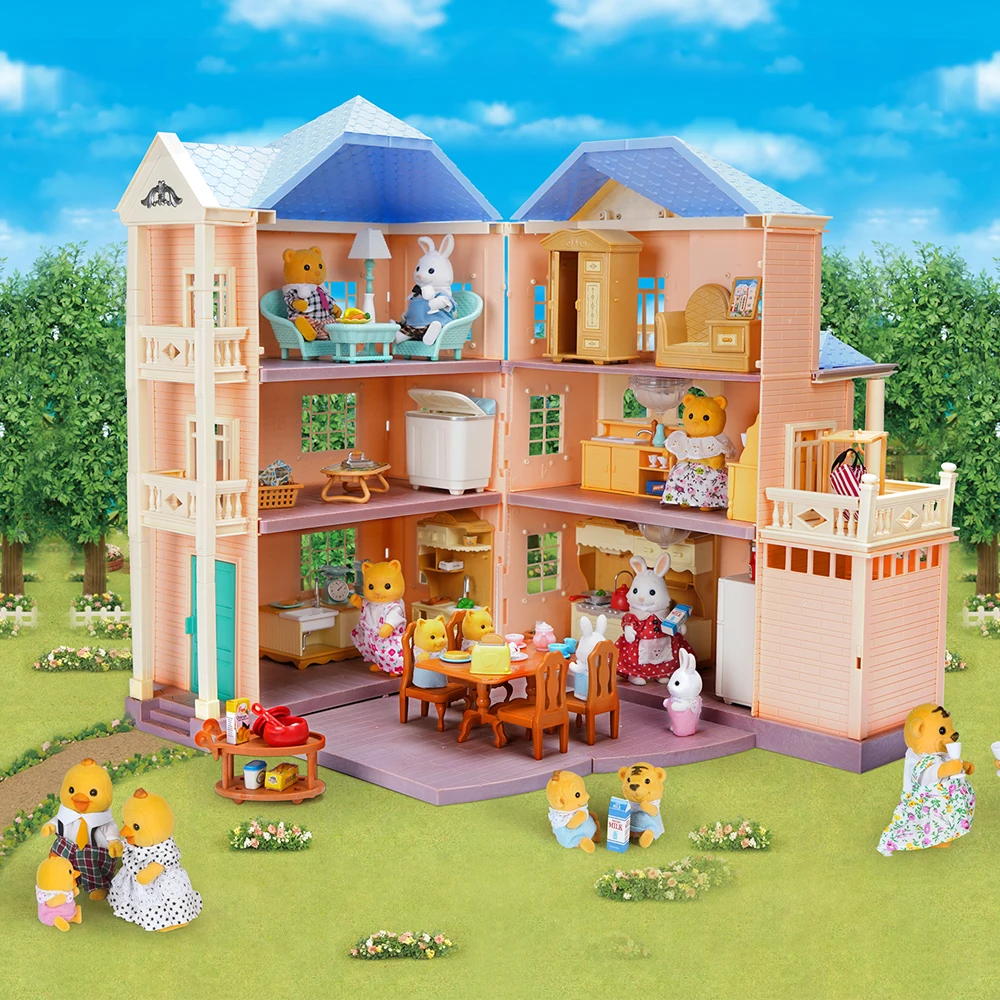 W skład zestawu wchodzą miniaturowe mebelki i elementy, które idealnie pasują do skali 1:12. W zestawie znajdują się akcesoria do kuchni, sypialni i łazienki, co umożliwia stworzenie pełnej przestrzeni do zabawy w dom. Wszystko wykonane z trwałego tworzywa ABS, które zapewnia długowieczność zabawek, a także bezpieczeństwo użytkowania. Stroje zwierząt do zestawu są rozmieszczone losowo, co dodaje elementu zaskoczenia i unikalności każdej zabawie.