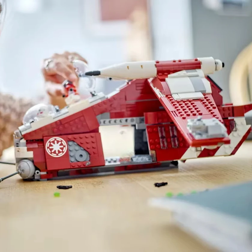 Klocki Space Wars Coruscant Guard Gunship to doskonały wybór dla każdego fana kosmicznych przygód. Zestaw składa się z 1083 elementów, które pozwalają na zbudowanie szczegółowego modelu statku bojowego z popularnej serii. Dołączone 5 figurek sprawia, że zabawa staje się jeszcze bardziej angażująca i pełna emocji.