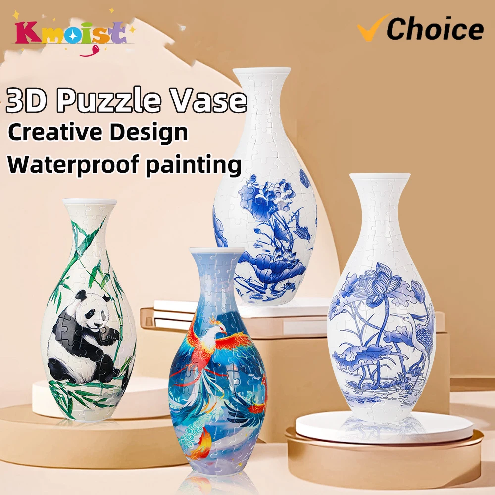 • Puzzle 3D Wazon z Porcelanowym Wzorem – Idealny Prezent i Dekoracja