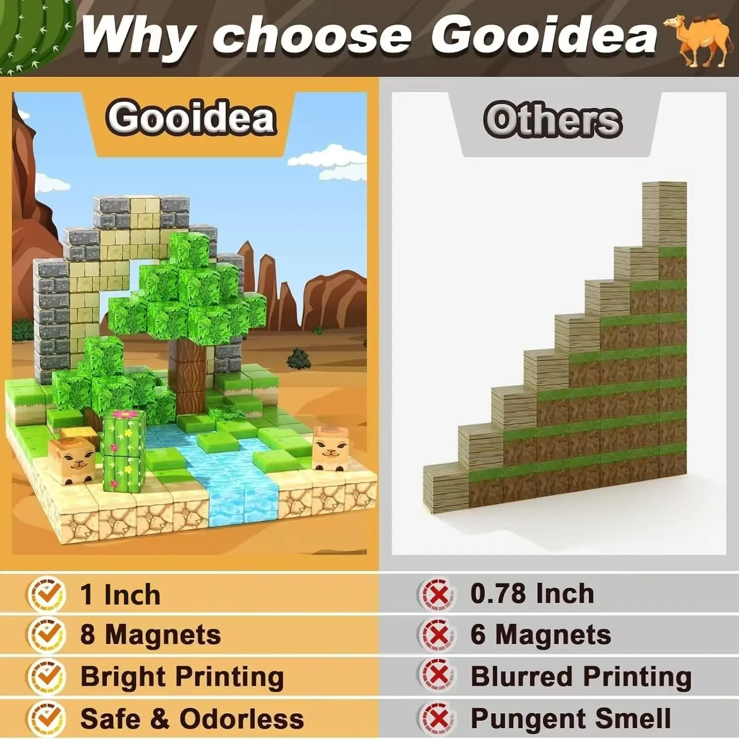 Zestaw Desert Theme nie tylko zachęca do twórczej zabawy, ale też pozwala rozbudować Twoje dotychczasowe światy Mine Magworld. Dzięki realistycznym motywom pustynnym, takim jak piramidy, kaktusy i zwierzęta, każda budowla ożywa i zyskuje unikalny charakter. To doskonały sposób na rozwijanie pasji do budowania i projektowania!