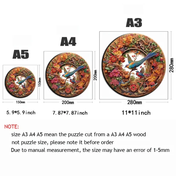Drewniane puzzle są przeznaczone dla osób w różnym wieku – od 3 do 14+ lat. Dzięki trzem rozmiarom puzzli (A5, A4, A3), możesz dostosować trudność układanki do wieku i umiejętności osoby, która będzie ją układać. Wybierz rozmiar A5 dla młodszych dzieci, A4 dla średniozaawansowanych, a A3 dla starszych dzieci i dorosłych.