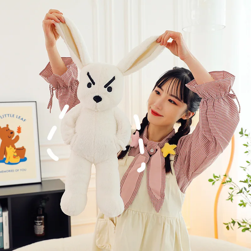 Wyobraź sobie dużego, białego królika o zadziornym spojrzeniu i niecodziennym charakterze. Ta pluszowa zabawka przyciąga wzrok nie tylko swoim rozmiarem (około 65 cm), ale też unikalnym designem. Idealny wybór, jeśli szukasz nietuzinkowego prezentu, który wywoła uśmiech na twarzy obdarowanej osoby.