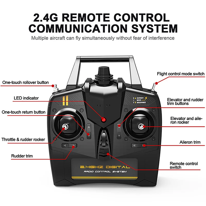 Akrobacje w zasięgu ręki – Samolot jest wyposażony w funkcję “jednego klawisza” do akrobacji, dzięki czemu możesz wykonywać spektakularne manewry bez potrzeby zaawansowanej wprawy. Dodatkowo funkcja “powrotu do domu” sprawia, że nie musisz martwić się o utratę modelu – wystarczy jedno naciśnięcie przycisku.