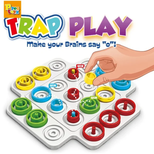 Trap Play to gra, która rozweseli każdego członka rodziny! Została zaprojektowana z myślą o rozwijaniu zdolności logicznych i strategicznych. Zawiera 36 elementów, które można układać na planszy w różnorodny sposób – duże, średnie, małe kawałki czy układanie elementów w rosnącej lub malejącej kolejności. Dzięki temu zabawa nigdy się nie nudzi, a dzieci uczą się myślenia przestrzennego oraz rozwiązywania problemów.