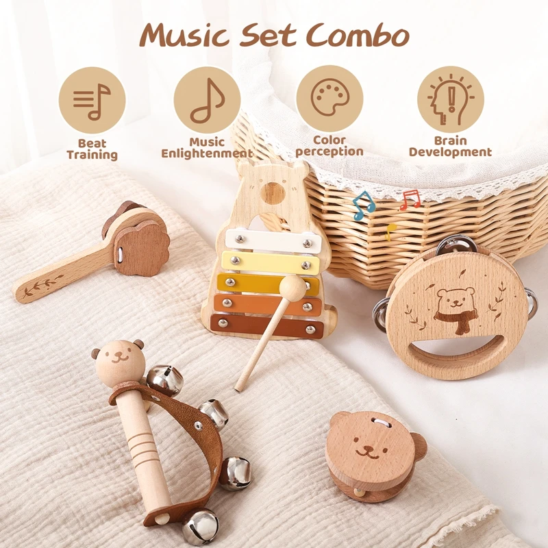 • Zabawki muzyczne Montessori: Drewniany zestaw dla malucha