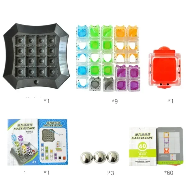 Maze Escape to gra, która łączy w sobie elementy klasycznego labiryntu z nowoczesnym podejściem do rozwoju logicznego myślenia. W zestawie znajdziesz 60 kart wyzwań o różnym poziomie trudności, 10 wież oraz 3 stalowe kulki, które muszą przejść przez labirynt. Każde wyzwanie to inna kombinacja przeszkód, co zapewnia długie godziny zabawy. Dodatkowo, zabawa jest tak skonstruowana, że można ją traktować jako zdrową rywalizację pomiędzy członkami rodziny lub przyjaciółmi.