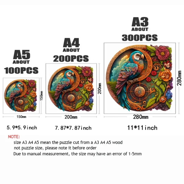 Rozmiar i wygoda: Puzzle dostępne w trzech rozmiarach (A5, A4, A3), co pozwala na wybór odpowiedniego stopnia trudności i dostosowanie do wieku.
